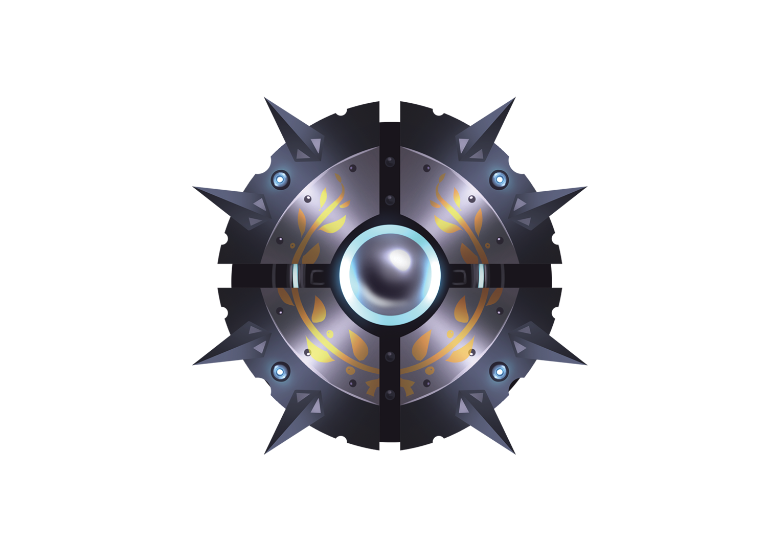 Fixée au bras non directeur, la targe amovible fait partie intégrante de la méta-armure. Pliée, elle augmente les possibilités défensives des chevaliers sans les gêner. On peut toujours utiliser une arme à deux mains ou une arme dans chaque main. Bref, c’est un petit bouclier qui recouvre le bras, avec de grosses pointes au cas où. Mais quand elle se déplie, la targe est un véritable bouclier qui couvre l’avant du chevalier. Avec le champ de force de la méta-armure, elle dévie activement les attaques et repousse les hostiles qui viendraient vous chatouiller de trop près.