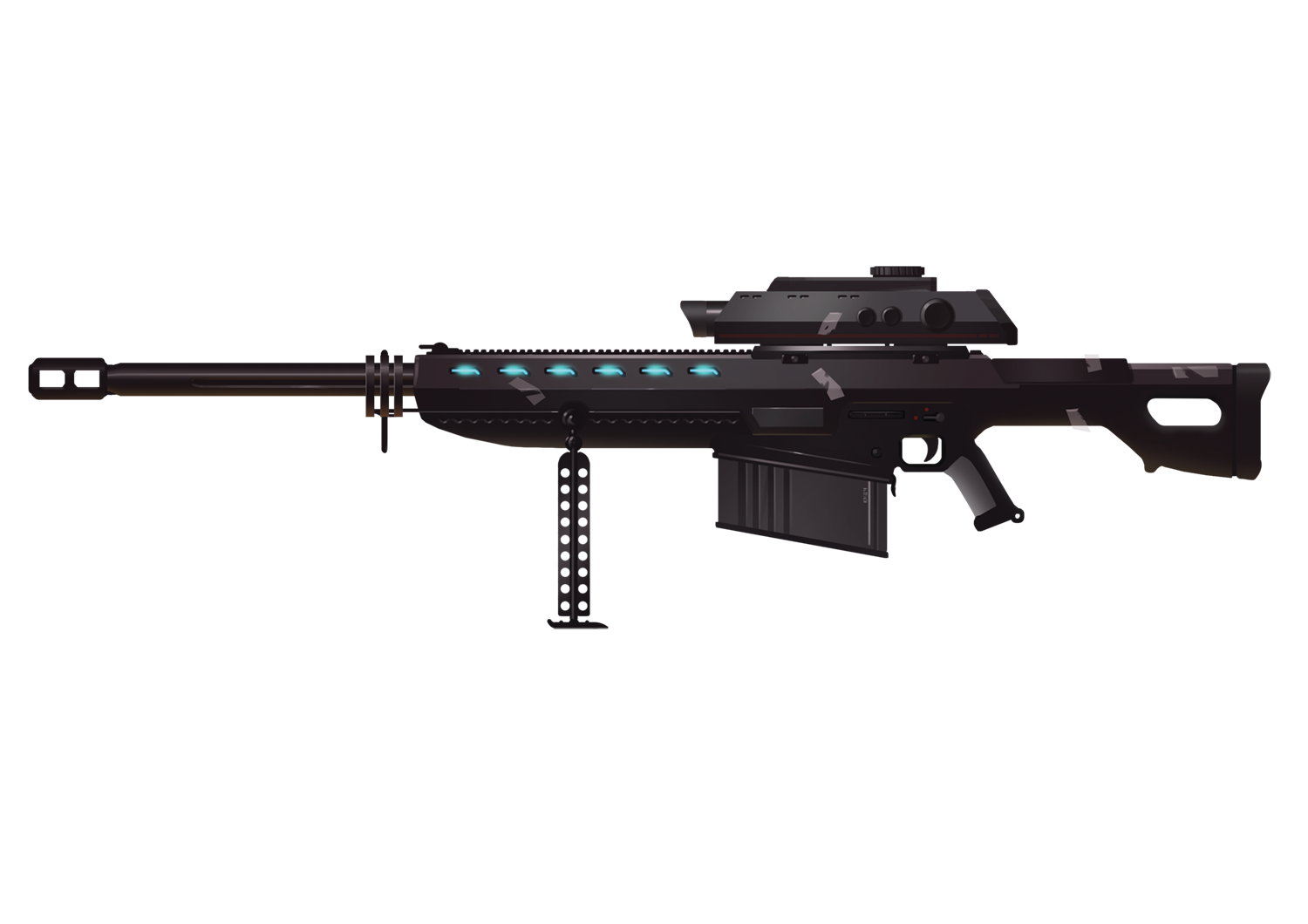 Ce très long fusil de précision anti-matériel tire des obus de DCA. Précis sur plus d’un kilomètre, il tire à travers la plupart des couverts urbains. Sa lunette de visée est doublée d’une caméra très haute performance pour le tir en sécurité et la désignation des cibles. Ces dernières apparaissent sur les affichages RA de toute la coterie pour l’assistance balistique automatisée.
