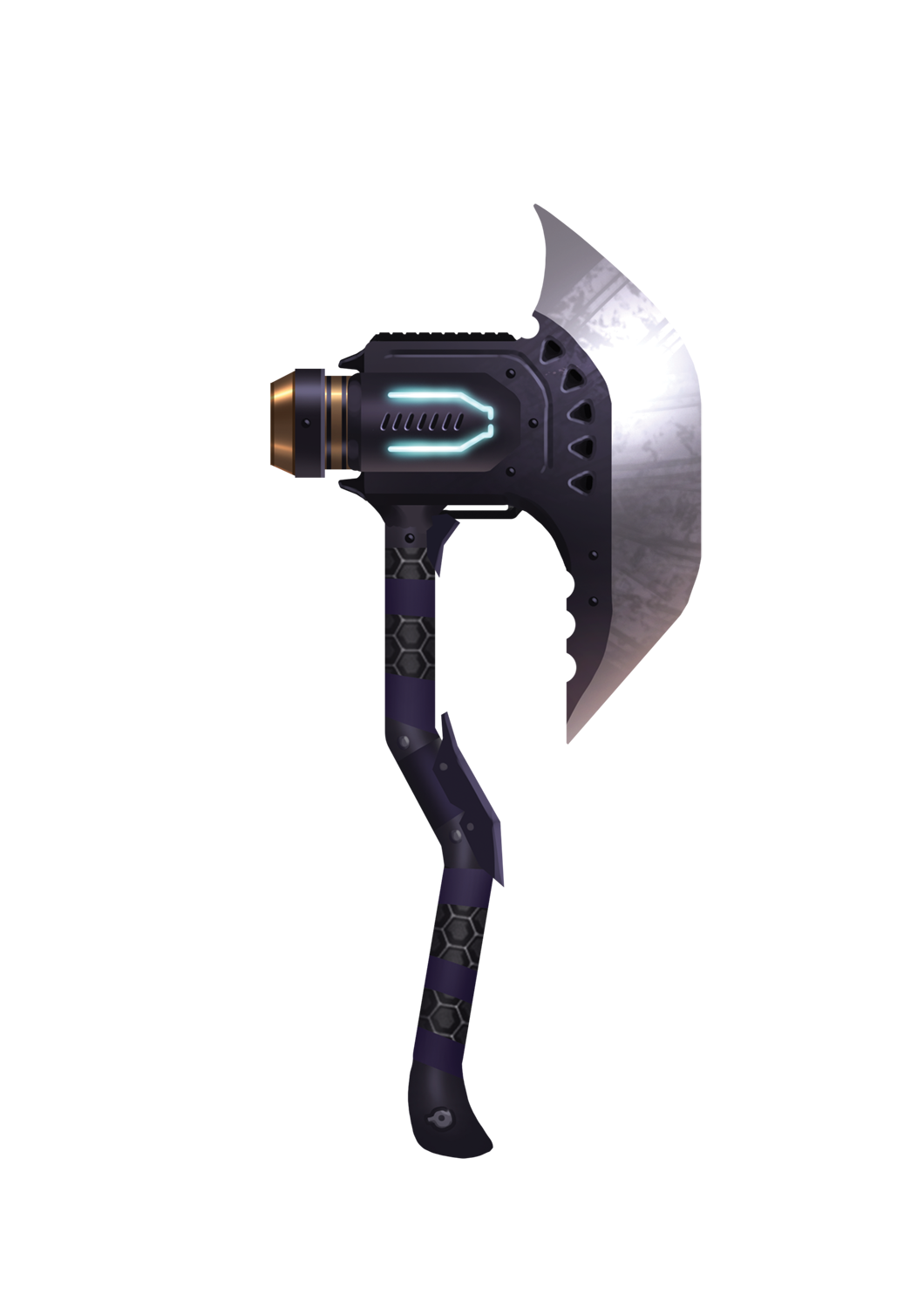 Le dernier modèle d’arme conçu par Gauvain est la hache à réaction. Des évents sur les côtés de la lame alimentent en air un réacteur à plasma qui accélère la vitesse de frappe et donc la violence des coups. Les chevaliers qui ont appris à la manier profitent de l’élan donné par la turbine pour attaquer plusieurs adversaires en de grands mouvements circulaires. La hache, et toute sa mécanique, est portée au rouge par la flamme bleue du réacteur, ce qui lui permet de s’auto-nettoyer par combustion, concassage ou fusion de tout ce qui peut rentrer dans les évents, chair, béton, acier, etc.