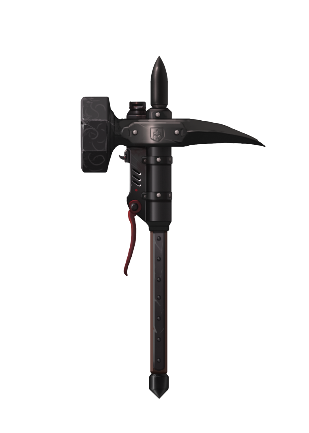 Cette grosse arme est un lourd marteau intégralement en métal avec une tête octogonale d’un côté et un épieu recourbé de l’autre. Très courante chez les écuyers, elle sert tout autant d’outil que d’arme. Au cas où, une cartouche de calibre 8 est installée dans le prolongement du manche et permet un tir unique, mais dévastateur, de chevrotine incendiaire-lumineuse.