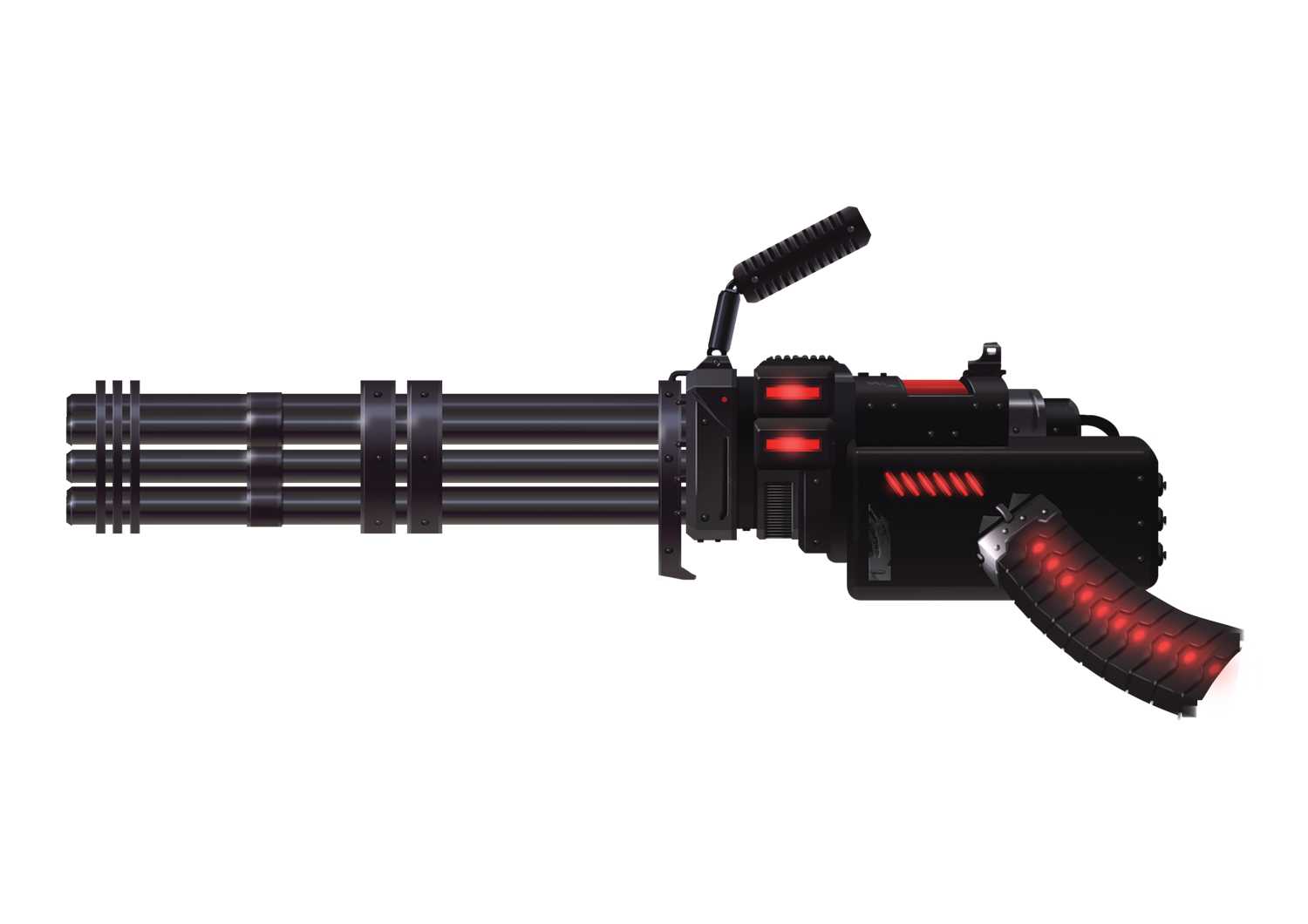 Les recruteurs du Knight ont l’habitude de dire qu’un chevalier en méta-armure est aussi puissant qu’un véhicule blindé. La mitrailleuse lourde à canons rotatifs le confirme. Elle se tient à la hanche, par la poignée du dessus, et un chevalier tire avec celle sur le côté. Une bande articulée blindée relie la mitrailleuse à un caisson de munitions fixé au dos de la méta-armure.