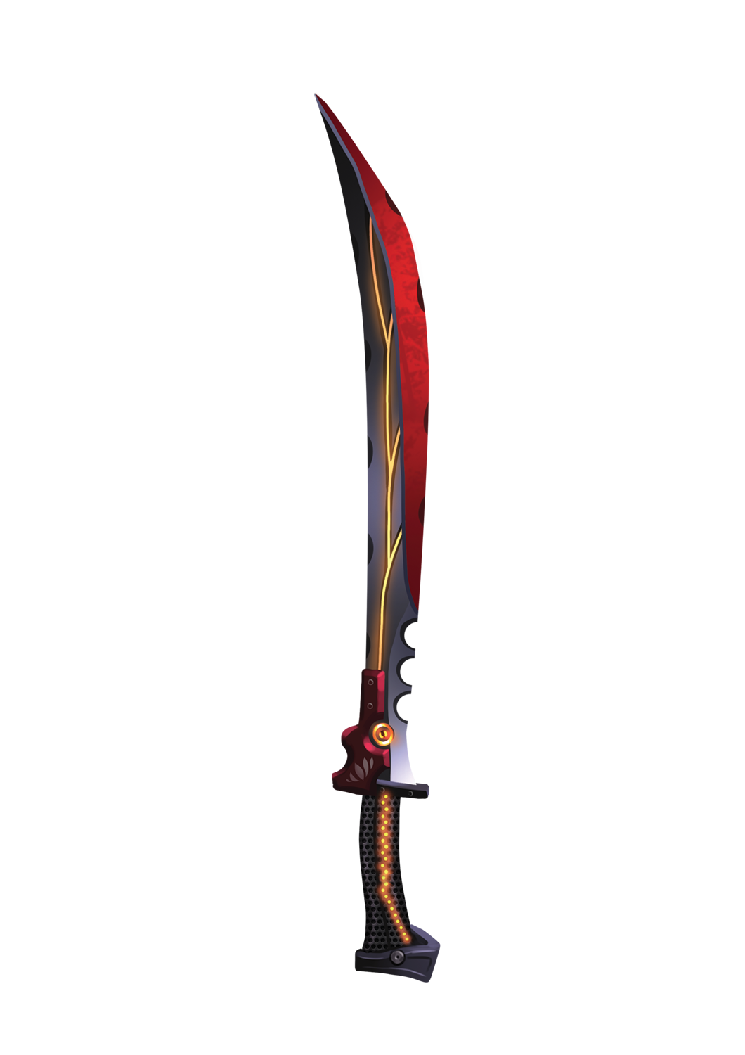 Ce sabre a pour particularité de s’enflammer au combat. Son fonctionnement est ingénieux : la poignée aspire l’air qui est mélangé à du carburant pour fusée dans la garde. Enflammé, il fuse au niveau des évents des deux côtés de la lame. Quand un chevalier tranche, la flamme s’engouffre dans la plaie, l’élargit et brûle les organes. Il faut juste penser à recharger la garde en carburant entre les combats.