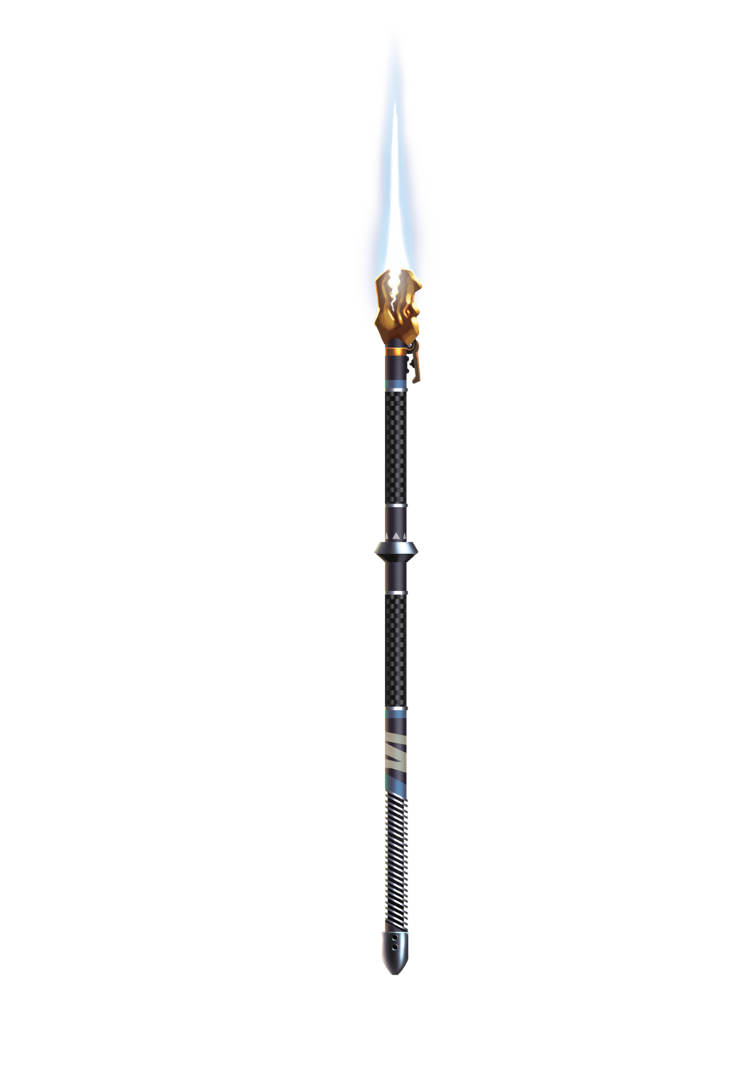 Ce long bâton qui ne paie pas de mine est une torche de découpage au plasma destinée aux chevaliers de la section Cyclope. De l’air est aspiré d’un côté, ionisé, puis soumis à un arc électrique, ce qui donne une flamme au plasma de l’autre côté. Elle se manie à deux mains, comme une lance. Sa longueur permet de tenir les adversaires en respect. Sa flamme à 18 000 °C est d’une efficacité redoutable face aux adversaires en armure.